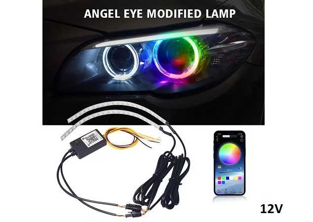 Κιτ φωτισμού αυτοκινήτου LED “Angel Eye” RGB με δυνατότητα ελέγχου μέσω εφαρμογής Bluetooth, προσφέροντας μια ευρεία γκάμα χρωμάτων και εφέ φωτισμού.
