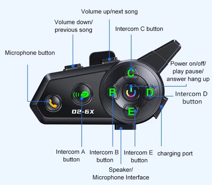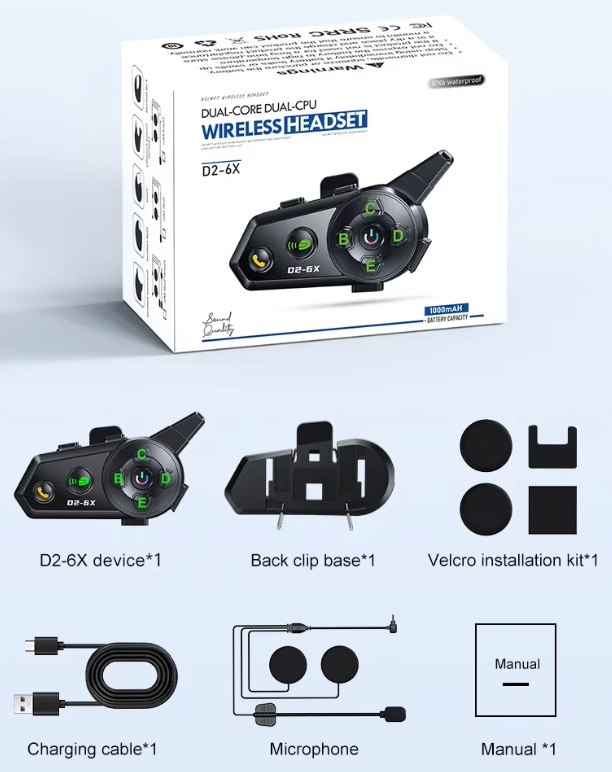 Ασύρματη ενδοεπικοινωνία κράνους μοτοσυκλέτας – Bluetooth – D2-6X – 811665