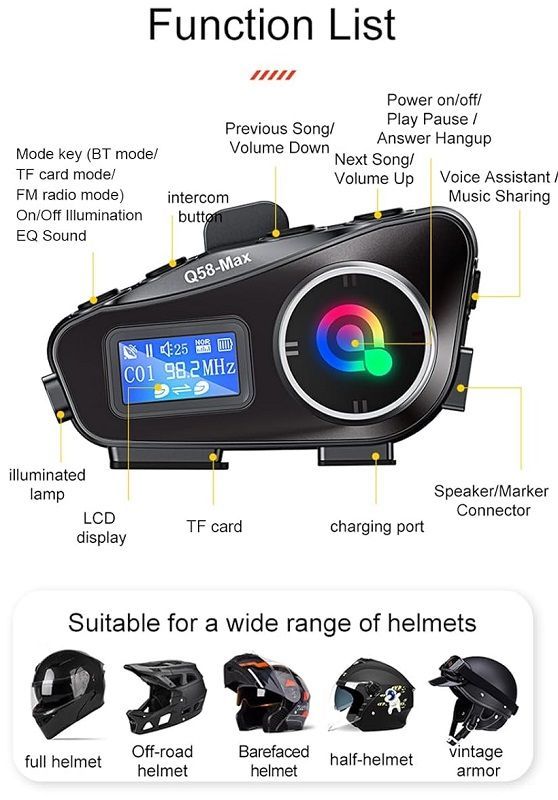Ασύρματη ενδοεπικοινωνία κράνους μοτοσυκλέτας – Bluetooth – Q58-MAX – 811658