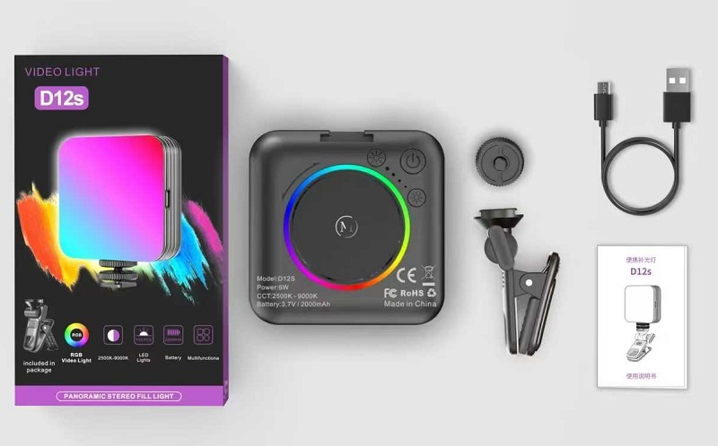 Επαναφορτιζόμενος φακός κάμερας LED – Multicolor – D12S – 812914