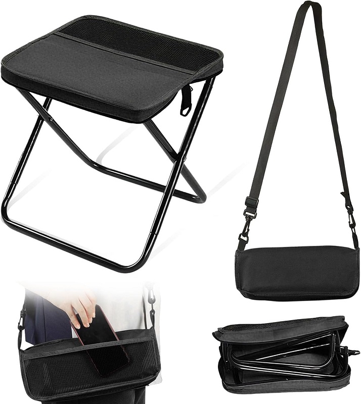 Πτυσσόμενο σκαμπό camping που κλείνει σε πρακτική θήκη/τσάντα μεταφοράς, με ανθεκτική επένδυση υψηλής ποιότητας. Διαθέτει πτυσσόμενο σιδερένιο σκελετό που διπλώνει με μία κίνηση. Ιδανικό αξεσουάρ για την εκδρομή, το camping, τη θάλασσα, το ψάρεμα κα.