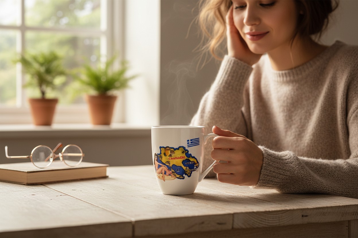 Κεραμική κούπα Souvenir – Halkidiki, με τύπωμα σε υπέροχα σχέδια, από υψηλής ποιότητας ανεξίτηλα, μη τοξικά υλικά και χρώματα, ιδανική ως αναμνηστικό ταξιδιού ή δώρο.
