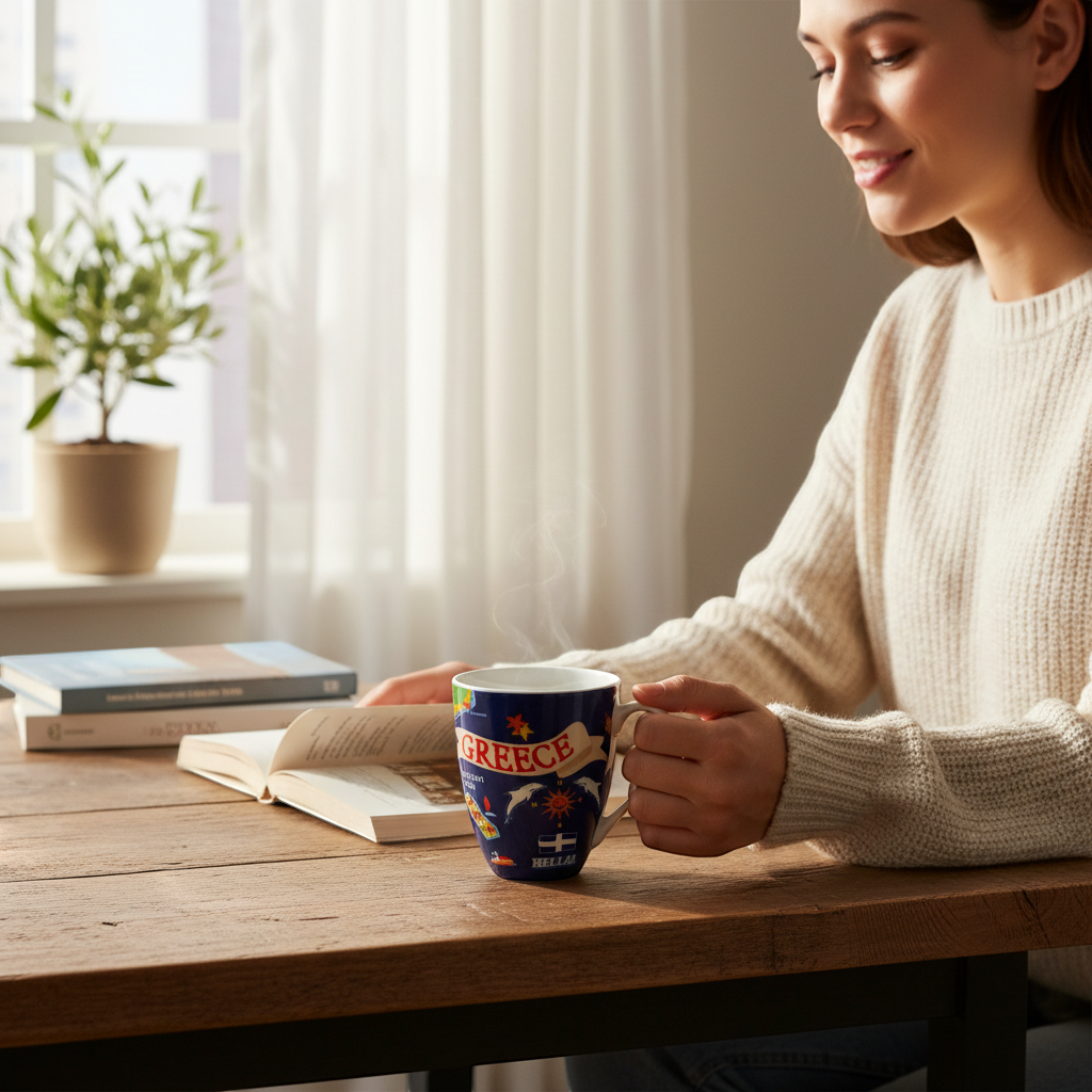 Κεραμική κούπα Souvenir – Greece, με τύπωμα σε υπέροχα σχέδια, από υψηλής ποιότητας ανεξίτηλα, μη τοξικά υλικά και χρώματα, ιδανική ως αναμνηστικό ταξιδιού ή δώρο.