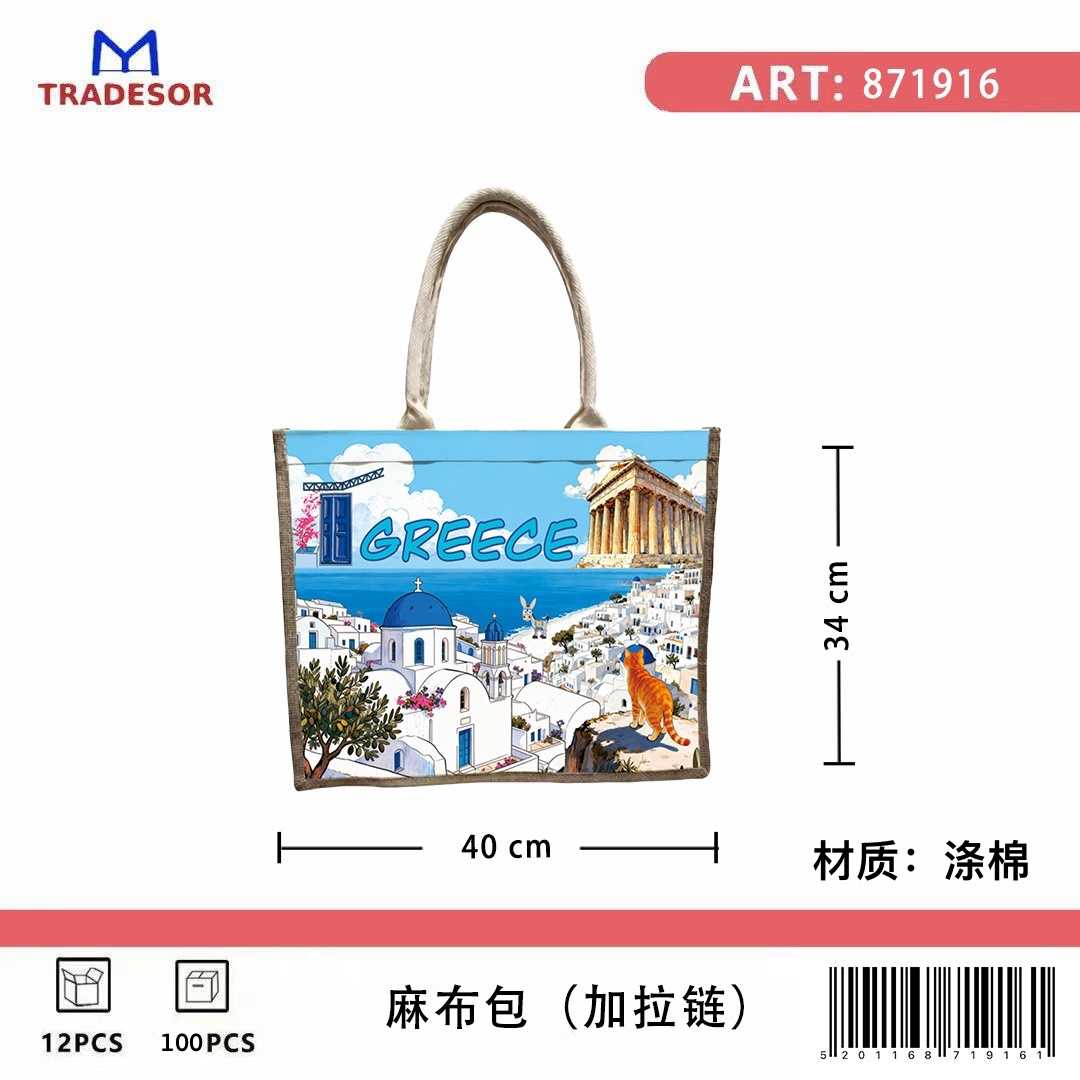 Τουριστική τσάντα λινή με φερμουάρ – Greece – 40*34*19cm – 871916