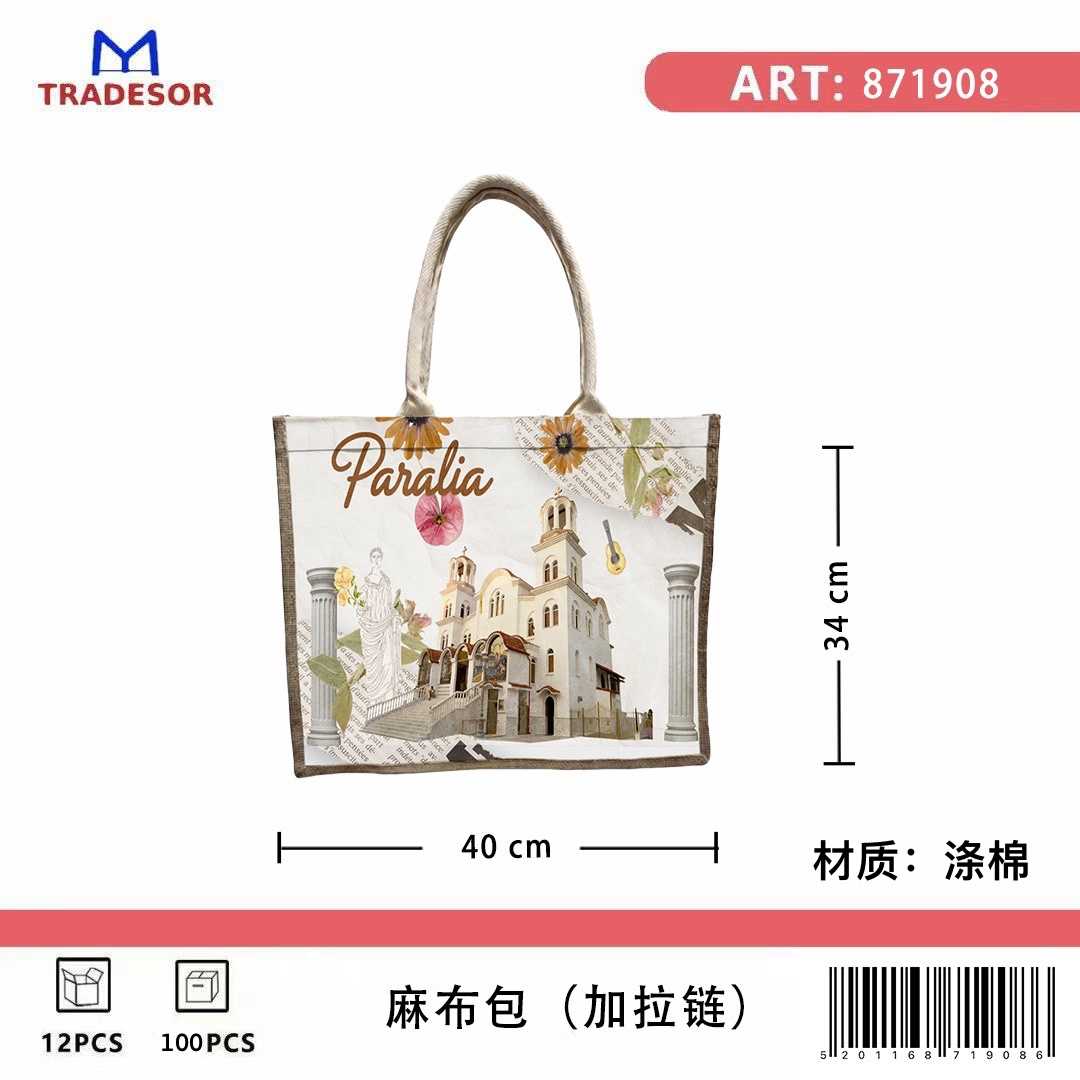 Τουριστική τσάντα λινή με φερμουάρ – Paralia – 40*34*19cm – 871908