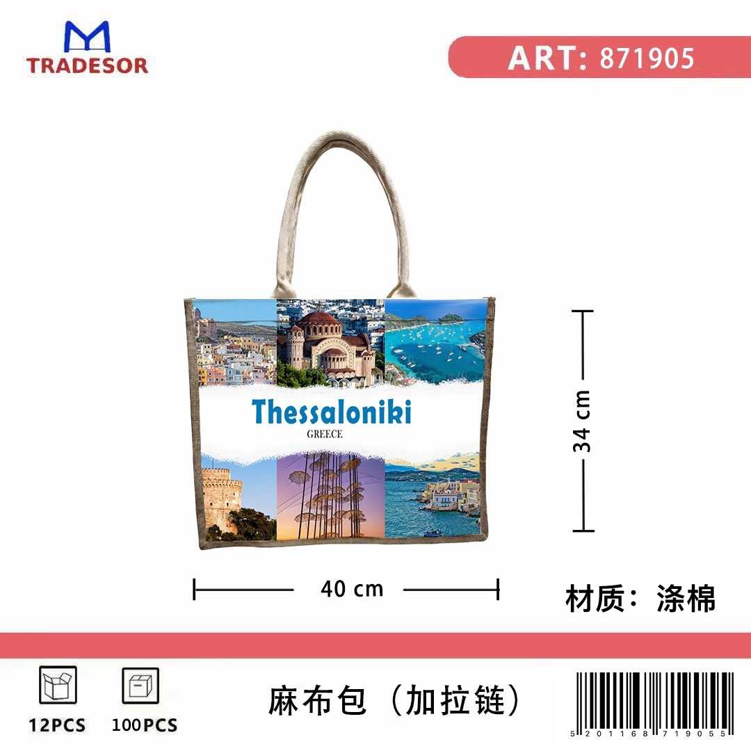Τουριστική τσάντα λινή με φερμουάρ – Thessaloniki – 40*34*19cm – 871905