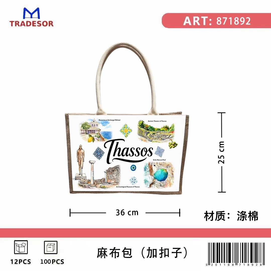 Τουριστική τσάντα λινή με κουμπί – Thassos – 36*25*16cm – 871892