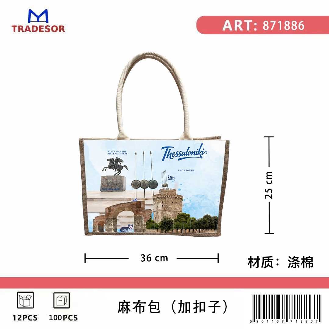 Τουριστική τσάντα λινή με κουμπί – Thessaloniki – 36*25*16cm – 871886
