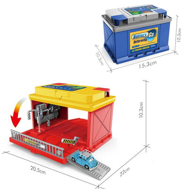 Παιχνίδι σε εντυπωσιακό σχεδιασμό μπαταρίας αυτοκινήτου που ανοίγει και μεταμορφώνεται σε Parking-αυτοκινητόδρομο.