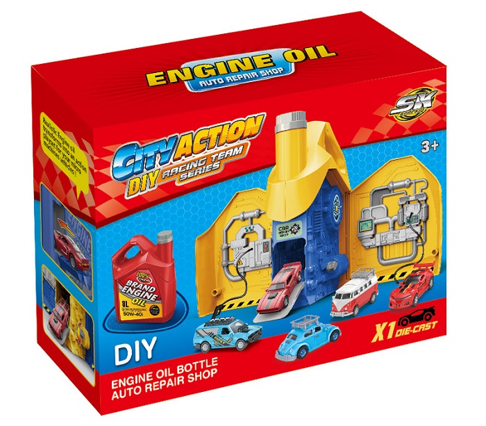 Παιχνίδι σε εντυπωσιακό σχεδιασμό δοχείου λαδιού αυτοκινήτου που ανοίγει και μεταμορφώνεται σε Parking-αυτοκινητόδρομο.