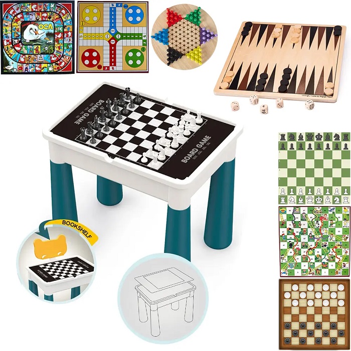 Σετ επιτραπέζιο παιχνίδι με πάγκο, 8 σε 1, με Σκάκι-Τάβλι-Φιδάκι-Γκρινιάρη κα., με όλα τα απαραίτητα σύνεργα και αξεσουάρ για ατελείωτες ώρες παιχνιδιού με την όλη την οικογένεια ή τους φίλους σας!