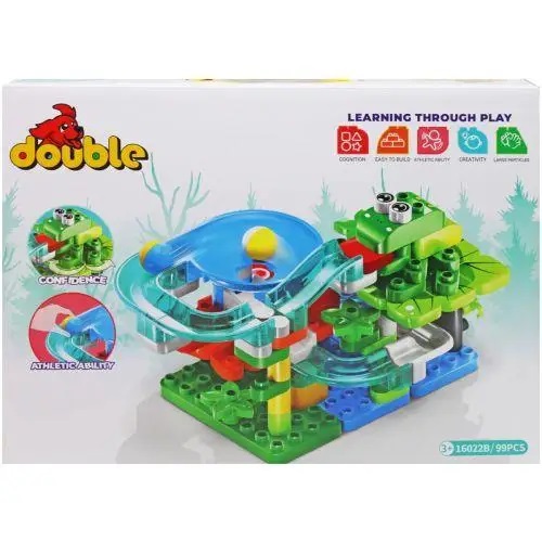 Συναρμολογούμενη πίστα DIY με τουβλάκα και τσουλήθρα με μπαλάκια που κάνουν τρελά κόλπα, για ένα ατελείωτο δημιουργικό παιχνίδι!