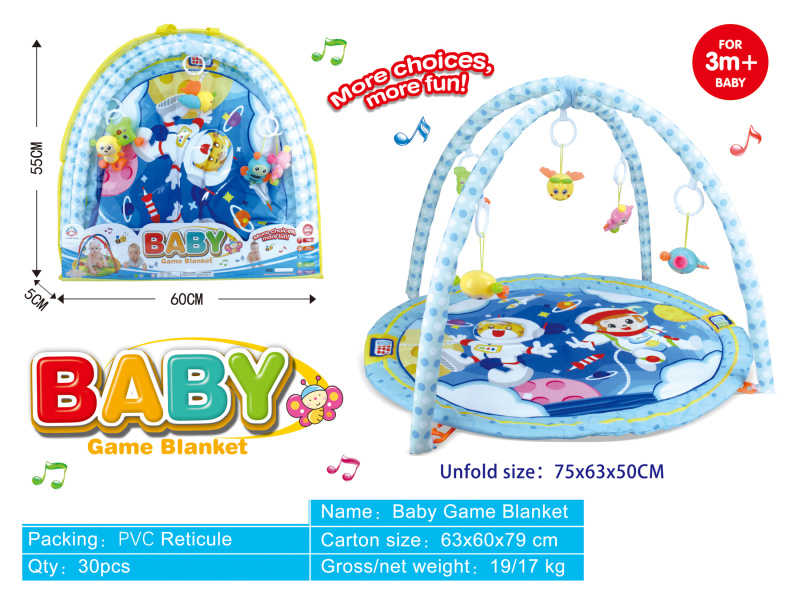 Βρεφικό γυμναστήριο με κρεμαστά παιχνίδια, με μαλακό στρωματάκι με σχέδια από απαλό υποαλλεργικό ύφασμα.
