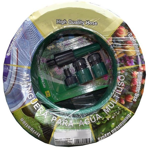 Λάστιχο ποτίσματος, εύκαμπτο και ιδιαίτερα ανθεκτικό, κατάλληλο για επαγγελματική ή οικιακή χρήση. Διαθέτει πλήρες σετ 4 τεμαχίων με εξάρτημα ποτίσματος και ταχυσύνδεσμο βρύσης. Διάμετρος: 1/2”. Μήκος: 10m.