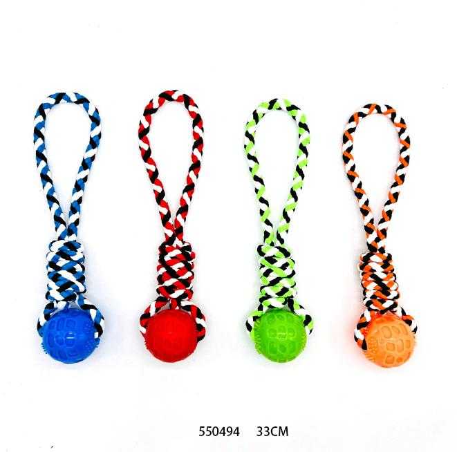 Παιχνίδι σκύλου πλεκτό σχοινί με μπάλα, κατασκευασμένο από ιδιαίτερα ανθεκτικό ελαστικό ύφασμα, μη τοξικό, ιδανικό για πολλαπλά είδη παιχνιδιού και άσκησης. Θα γίνει το αγαπημένο καθημερινό παιχνίδι που το σκυλί σας θα λατρέψει.