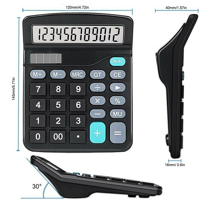 Ψηφιακή αριθμομηχανή που τροφοδοτείται είτε με μπαταρία είτε αποκλειστικά ηλιακά. Διαθέτει μεγάλα πλήκτρα και μεγάλη ευδιάκριτη ψηφιακή οθόνη LCD, ιδανική για επαγγελματική χρήση. Χαρακτηριστικά: Τροφοδοσία: Μπαταρίες 1*ΑΑ ή ηλιακή ενέργεια, Αριθμός ψηφίων: 12, Αριθμός σειρών: 1, Υλικό κατασκευής: Πλαστικό, Ψηφιακή οθόνη LCD, Αντιολισθητικά πατάκια βάσης, Διαστάσεις: 14.5 x 12 x 4 cm.