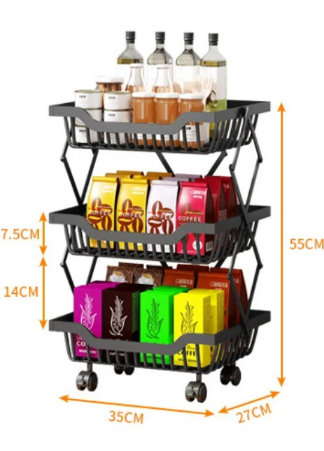 Μεταλλική ραφιέρα τριώροφη, με ρόδες για εύκολη μετακίνηση. Πτυσσόμενη για να μην καταλαμβάνει χώρο όταν δεν χρησιμοποιείται, με εργονομικό σχεδιασμό για εύκολη καθημερινή χρήση.