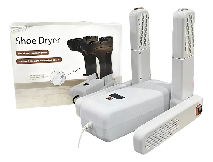 Πρωτοποριακή ηλεκτρική συσκευή για γρήγορο στέγνωμα των παπουτσιών σας, με εργονομικό σχεδιασμό για ομοιόμορφη κατανομή του αέρα και άμεσο αποτέλεσμα με εξαιρετικά χαμηλή κατανάλωση ρεύματος.