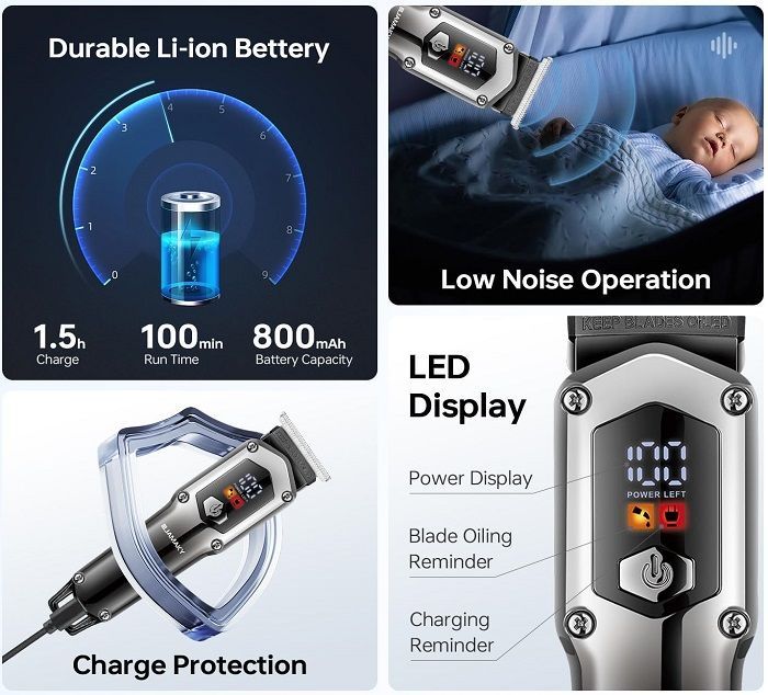 Επαναφορτιζόμενη κουρευτική μηχανή σε εντυπωσιακό σχεδιασμό, με λεπίδα ακριβείας από ανοξείδωτο ατσάλι, με μεγάλη αυτονομία μπαταρίας, εργονομικό design και αξεσουάρ, κατάλληλη για κάθε είδους περιποίηση σε μαλλιά, γένια και σώμα.