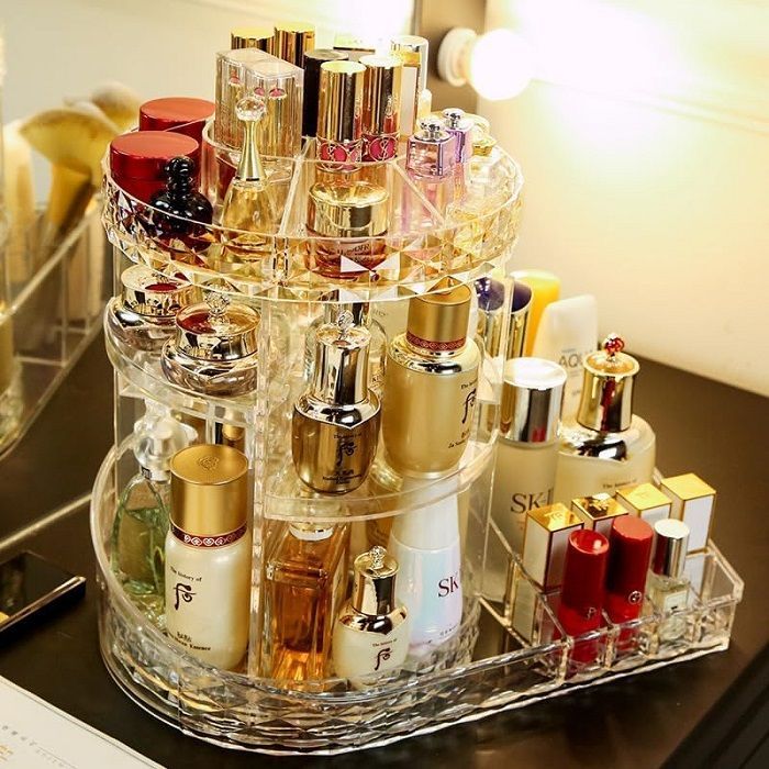 Επιτραπέζια βάση οργάνωσης καλλυντικών και μπιζού περιστρεφόμενη, με συρτάρια, πολλαπλές θήκες οργάνωσης και εργονομική σχεδίαση εξοικονόμησης χώρου.