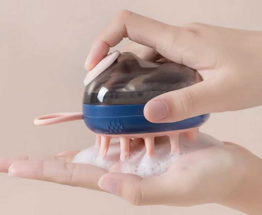 Βούρτσα κεφαλής μπάνιου με εργονομικό σχεδιασμό για άνετη χρήση και ενσωματωμένο δοχείο σαπουνιού.