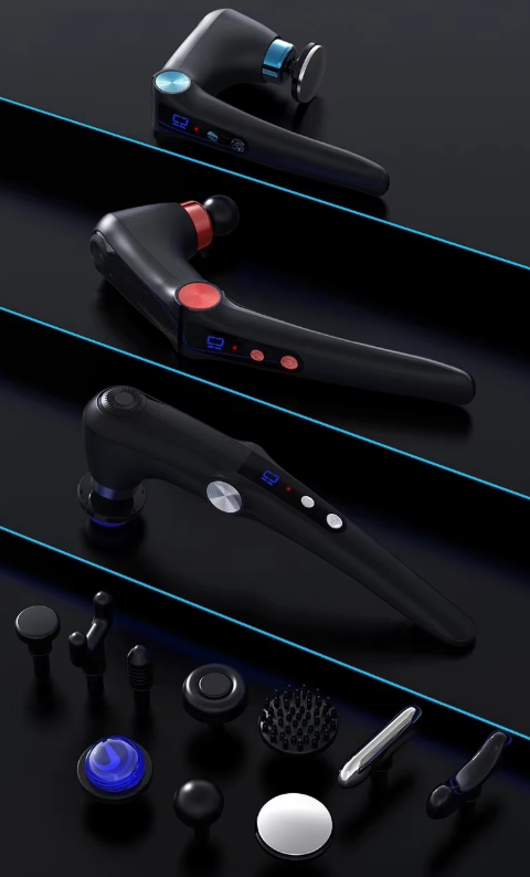 με ειδική εργονομική λαβή πλάτης και 8 επιπλέον εναλλάξιμες κεφαλές για εφαρμογή σε όλα τα σημεία του σώματος που επιθυμείτε.